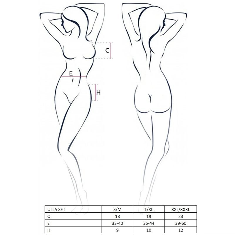 O conjunto da coleção Ulla é um fabuloso conjunto de lingerie com um design espetacularmente sexy com o qual você se tornará uma bomba de sedução, fabricado pela prestigiada marca de lingerie Passion